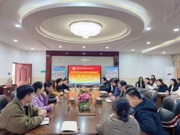 随后,在该校行政楼会议室召开了见习调研见面会,衡师祁东附中总支部书记王远明、副校长陈建林和周迪云、教务处主任周云贵、政保处唐雄威主任、班主任代表刘坤鹏、5位心理课教师以及我校见习调研师生参加了本次会议。会议由邓育武和周云贵共同主持。首先,衡师祁东附中王书记和陈副校长先后从学校基本情况、学校建设发展、课程教学、教师发展、学生发展以及办学成果等六个方面对学校情况做了简单地介绍,并组织观看了展示该校一天不同时辰的、丰富多彩的教育教学活动剪影视频。随后,政保处主任唐雄威分享了学校构建的“三位一体”的育人体系,侧重地介绍了学校有关心育工作的开展情况,他以案例形式展示了学校的心育工作特色,如《学生行思录》《心育工作手册》两本校本教材、许多丰富多彩的特色活动以及优秀教师的感人事迹,强调了育人的首位性和重要性。接着,高二优秀班主任刘坤鹏老师用自己的亲身经历为我们种下了一颗“良师益友”的种子。他特别指出,教师要将价值引领放在首位。他强调师生平等关系。他介绍,需要细心观察,不断深入与学生谈心谈话、家访与反思,才能不断创新班级管理模式,在以“阅读人生、思考人生、书写人生、奔跑人生”为指导思想的班级管理过程中,主动参与和带领学生互动,产生了许多生动感人的故事。最后,邓育武对会议作了简单的总结。