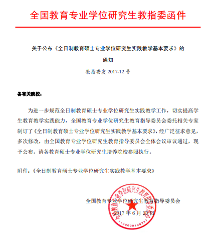 全日制教育硕士专业学位研究生实践教学基本要求(教指委发[2017]12号)